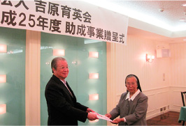 ○吉原育英会設立40周年を記念して八戸市内の中学3年生全員にシャープペンを贈りました。